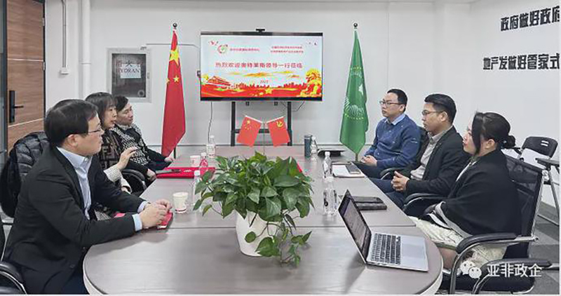 2022年2月17日,奧特萊斯(中國)助理總裁、奧特萊斯產業發展委員會秘書長馬弢、研究中心主任陳壽彭等一行蒞臨亞非絲路,並與我會副會長兼秘書長、亞非絲路商務中心常務副主任、絲路國家館館長楊志慧、我會執行秘書長姜麗娜、副秘書長兼絲路國家館副館長顧偉業進行友好互訪商洽,並達成多項戰略合作共識。